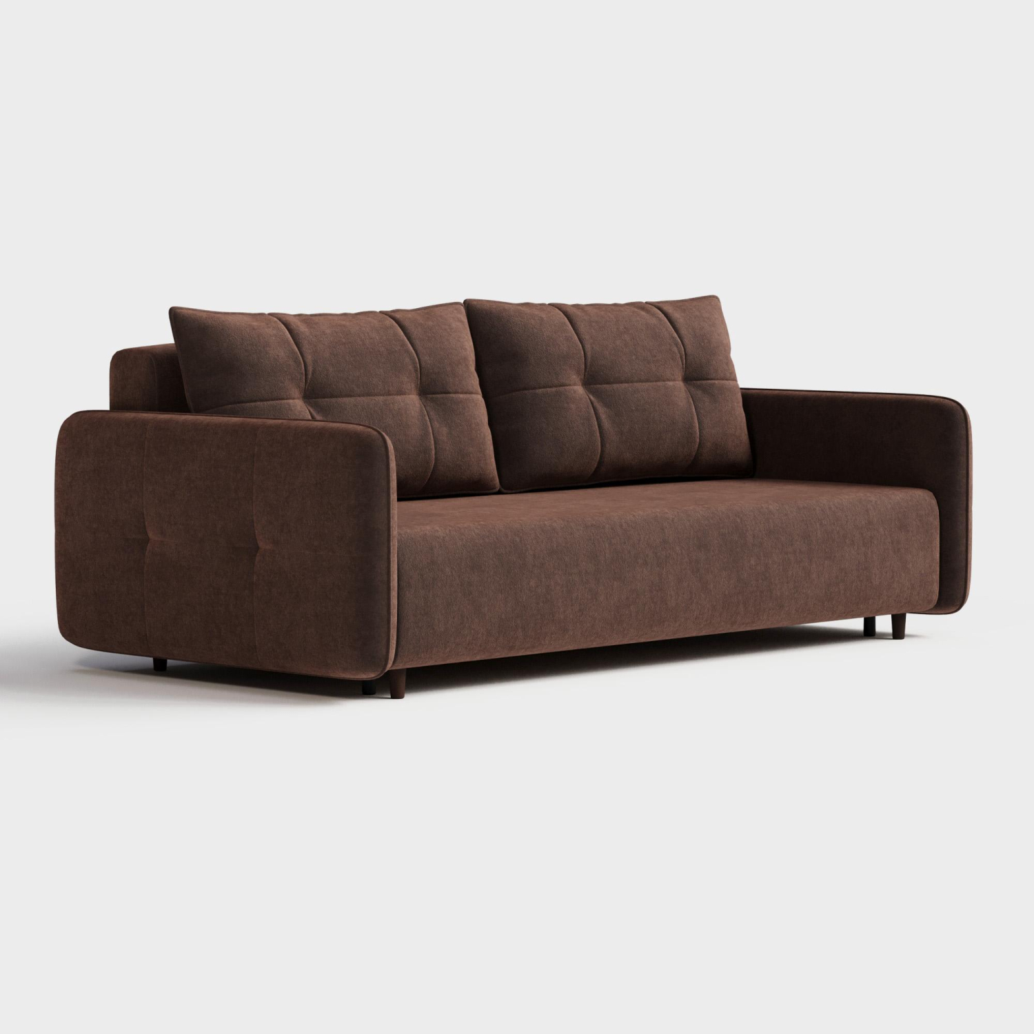 Диван-кровать Сканди — классическая модель идеальной формы. Эффектная утяжка обивки добавляет модели индивидуальности, а интерьеру — уюта. Комфортный механизм для ежедневного сна, который удачно интегрирован в модель с высокими ножками – ТИК-ТАК. Ткань велюр водоотталкивающая, мягкая и надежная.