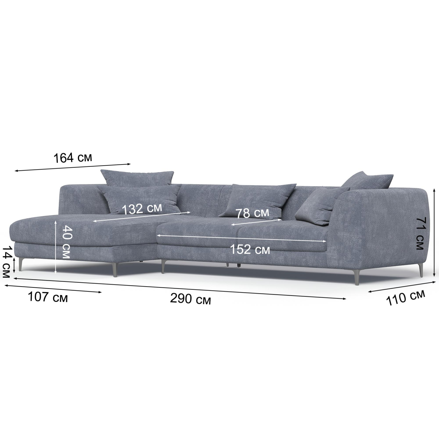 Наличие хромированных ножек делает диван более легким и воздушным, а также улучшает циркуляцию воздуха под ним, что помогает предотвратить скопление пыли и грязи.
