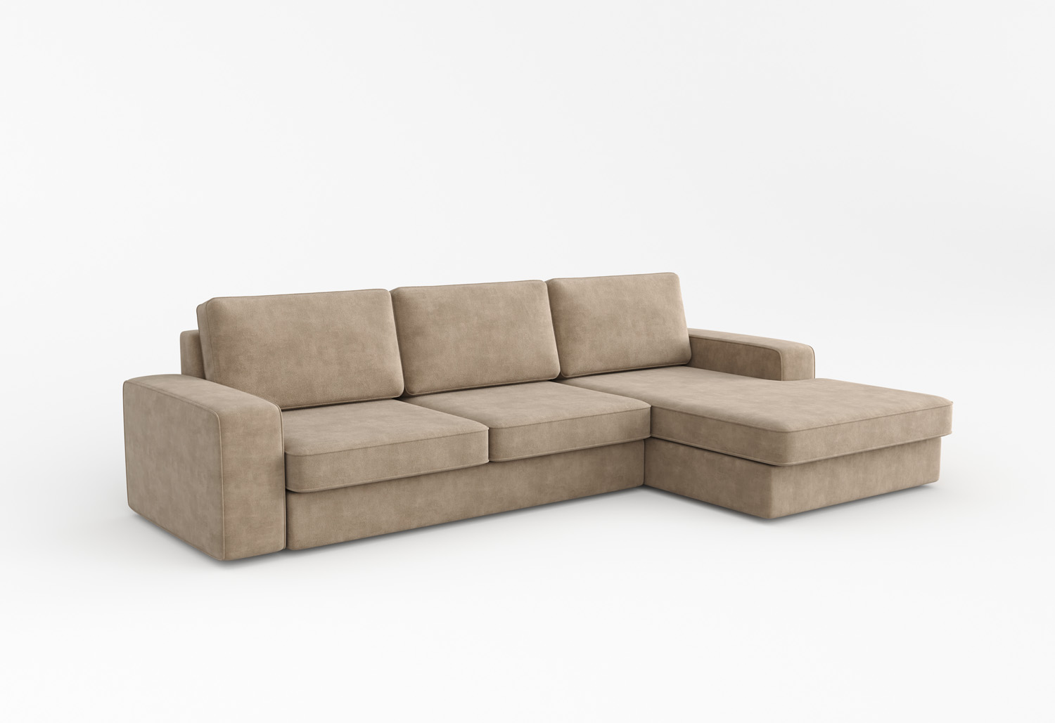 Диван Ликки – классический вариант для современного интерьера. В разложенном виде диван Ликки в угловой или прямой конфигурации превращается в полноценное спальное место. Удобный механизм позволяет разбирать диван одним движением. А стильный дизайн удачно впишется в любой интерьер. Широкие подлокотники хорошо смотрятся вместе с удобными диванными подушками. Обивка дивана изготовлена из качественного мягкого велюра и имеет оригинальный кант по периметру всех элементов дивана. Велюр очень приятный на ощупь, он создан для комфорта и уюта. При этом хорошо чистится и долго сохраняет первоначальный внешний вид.